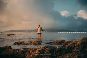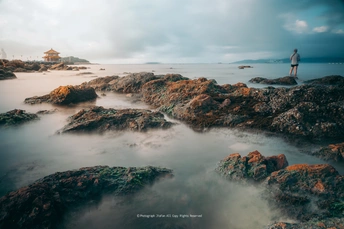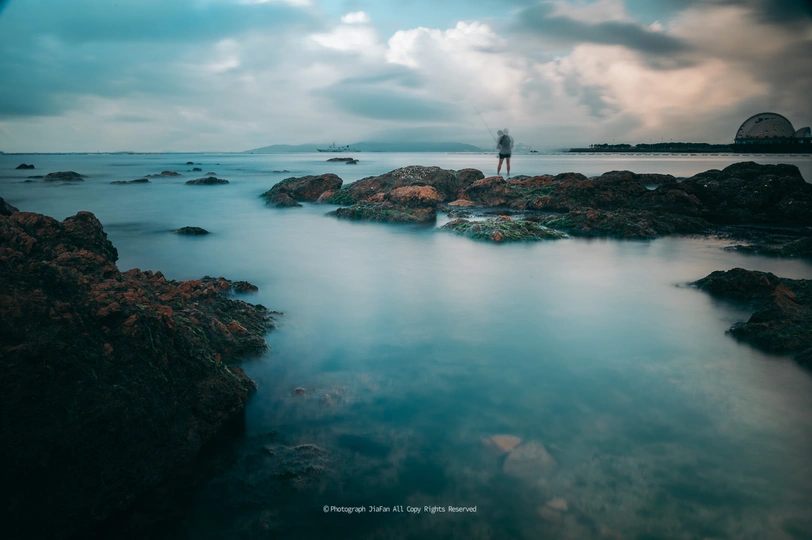 早上5点出门,拍了这组青岛老人钓鱼的场景,顺着日出慢慢起来