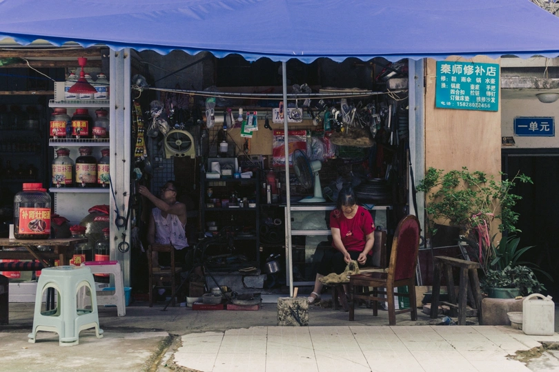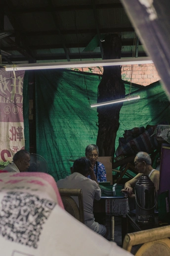 成都内曹家巷工人村,最老的房子可以追溯到上世纪中叶。在网上查找是四川三建的职工宿舍,整个社区房屋破旧,硬件条件落后,是典型的“城中村”。社区底层保留了传统市井生活的状态和气息,菜摊,肉铺,水果店,烧腊店,洗衣、裁缝、理发、家电维修等接地气的生活服务业沿街排布。在街巷中可以看见在老人在藤椅上乘凉,棋友围坐着石墩子下棋打牌,人们在茶馆里搓麻将吹牛。 但这个地方却和春熙路,天府广场较近,交通相对便利,附近配套设施也相对齐全。但就是这样也很难想象这样黄金地段竟然被地产商抛弃,话说回来这或许也是它幸运的地方