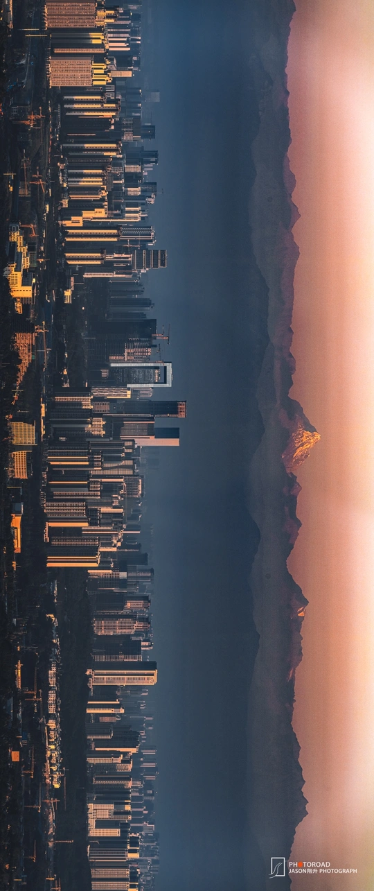 早上的第一缕阳光照亮了幺妹和大雪塘,整个成都天府新区cbd和高端小区在雪山下,震撼~