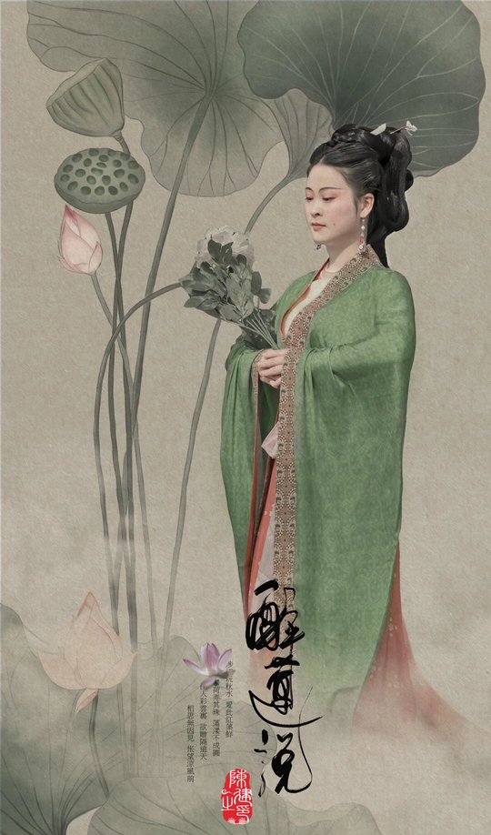 之前阆中首届“朝花节”活动现场拍的一张照片,背景太杂乱,做一张工笔画处理效果。