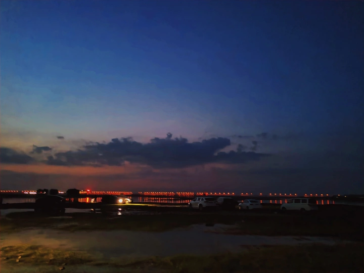 手机华为nova7流光快门,南水北调第一坝汉江大坝夜景