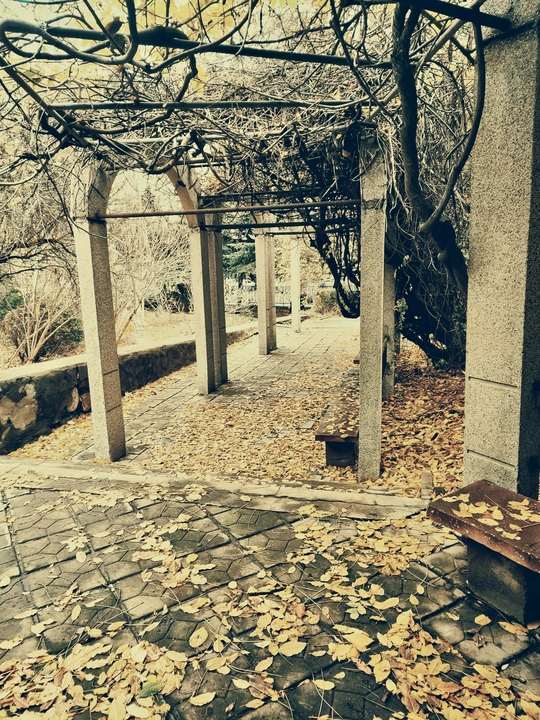 秋风萧瑟,校园一角