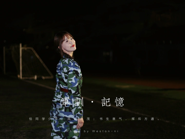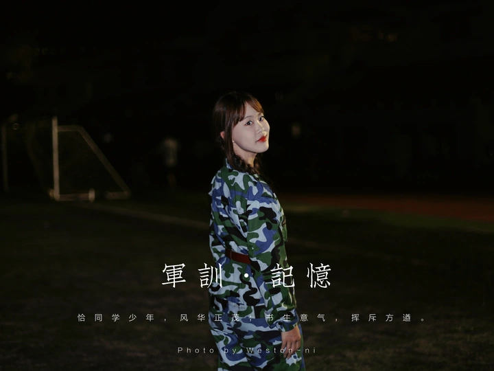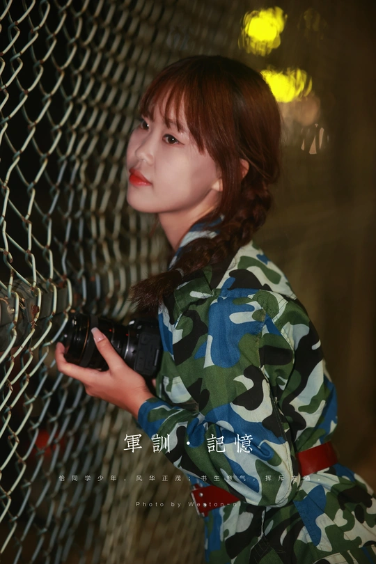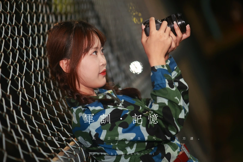 一个大一新生穿上军训服,军训是步入大学的第一课,充满许多美好的回忆,于是帮她拍下这么一组照片。