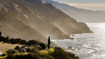 还记得那天是返回的路上,我和哥哥说,我们沿着号1号公路一直走吧。因为风景太好,哥哥开车时候该有小小的分神。拍这张图的时候,是早上八点多,刚好太阳出来,海浪打在山崖上,激起了一层层的水雾,配上金灿灿的太阳,就像是一副山水画。