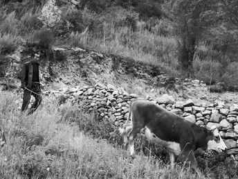 回来的路上 看到这幕 牧民像是赶着牛群去卖了赚钱 但我总觉得牛不情愿让自己被迫接受这样的命运 所以一路上的挣扎 想要逃脱摆在自己面前的结局 牛被卖了最坏的结局就是成为人类的盘中餐 我在想 我们为什么为了自己的食欲而伤害这些动物 牛勤劳了半辈子最后魂落成这样的结局 我想想都觉得残忍。