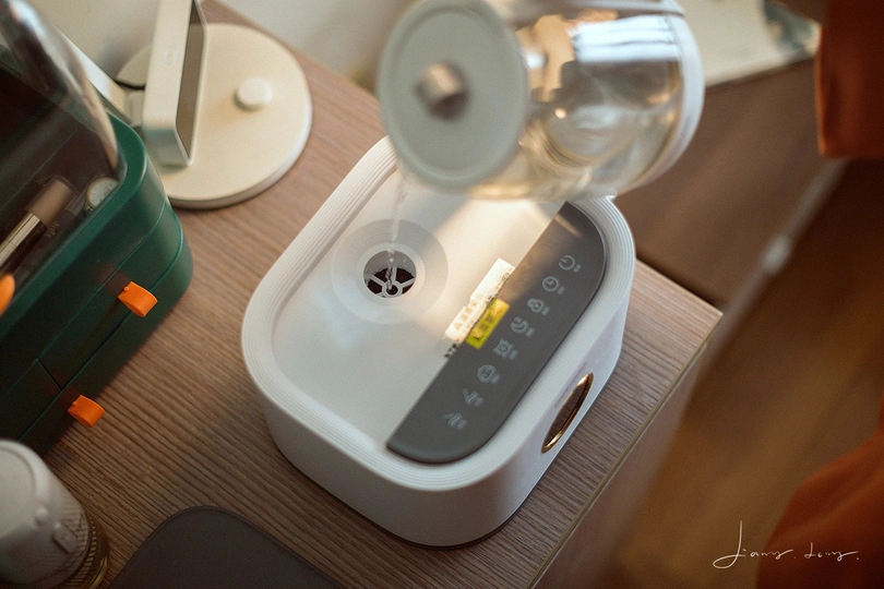 今年忽然就刮起了一阵水暖垫的热潮,我也跟风入了一套——大宇智能恒温水暖电热毯。几天的使用下来,的确比电热毯好多了,首先它是主机与床垫分开的设计,主机内把水加热,然后热水在整个床垫上循环,水电分离安全的同时,温度比较均匀恒定,也不干燥,暖被窝效果如真人。 ◆到手后,首先通过安装管道,连接好主机和水暖垫,操作比较简单。然后加纯净水,才能接通电源开机,建议到手后先认真阅读说明书哦~ ◆加水的位置在按键上方的盖子下面,隐藏式的注水孔,掀起盖子就可以看到注水孔,旋转拧开,加入500ml的纯净水即可。大容量的水箱一次加水,可以使用两个月不用续水。 ◆操作面板在上面,通过触摸操控,触摸体验灵敏。夜晚还有淡淡的灯光,可以清晰地看到各项功能键。如果嫌灯光影响睡眠,也可以切换成睡眠模式,就能关闭所有灯光。对于其它水暖毯拥有的APP,看似很高科技,其实像这种就在床边使用的,APP的设计反而有些多余,功能设计简单易操作才最重要,对于老人更容易学习和上手操作,使用更加方便。 ◆机器运行静音,几乎不会发出什么声音,开启夜晚模式后,机器会更加安静,同时关闭灯光~有定时关机功能,从1小时到24小时都可以设置,设置好