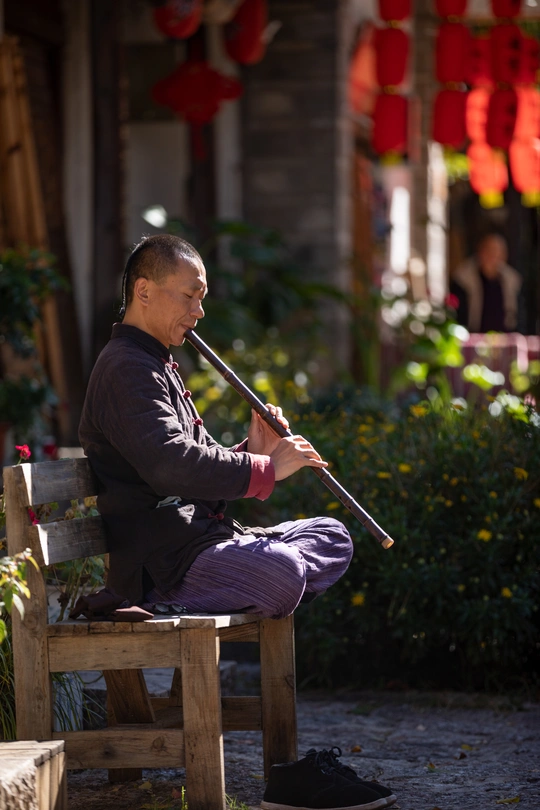 束河古镇街头,偶遇吹箫人