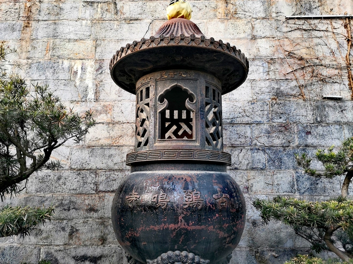 圆形铁香炉。