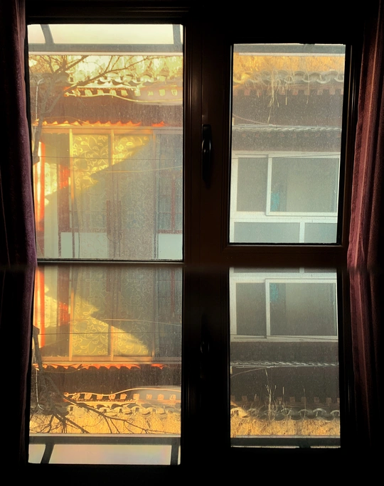 清晨,吃完早餐,不经意望向窗外,发现晨光斜撒下来,照在对面的房屋上,暖意十足