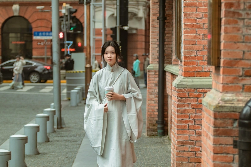 穿梭在现代都市的汉服小姐姐