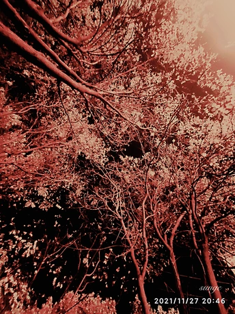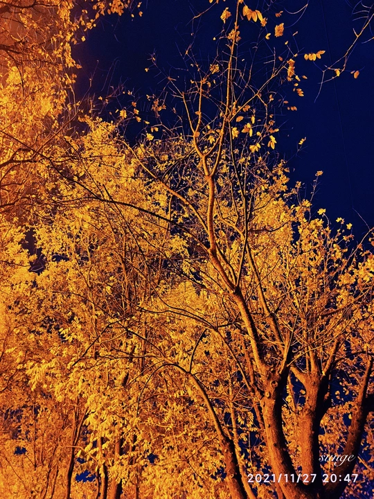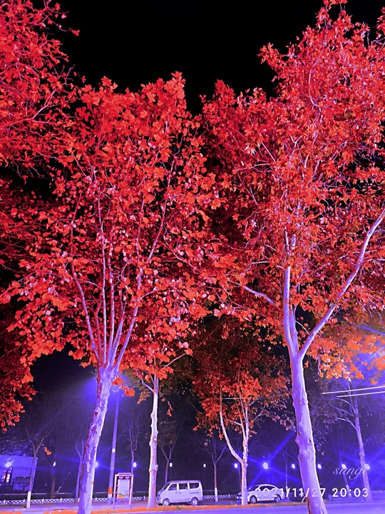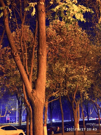 当夜幕降临,那些在日光下的树木,似乎在急不可待地等待着这一刻的到来,用各自不同的身姿,向路人表演着自己在夜色中的另一番风采。