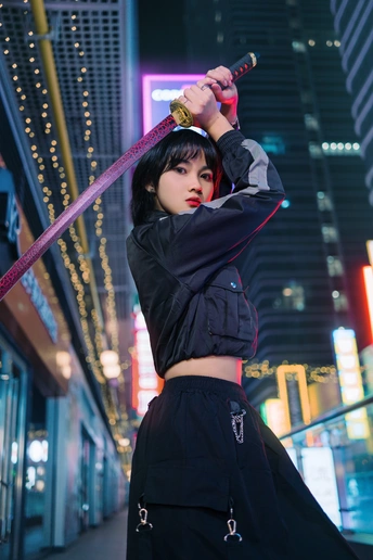 今年的第二波赛博朋克人像来了!!这次是银翼杀手-困困,一个从未来穿越到城市中的女杀手。 出镜:困困 拍摄&后期:波子Booz