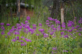 霞红灯台报春生长在海拔 2400-3200 米的湿地、草坡和林下。每年 6 月,有大片霞红灯台报春在玉龙雪山下的文海湿地盛开,构成灿烂的报春花海。
