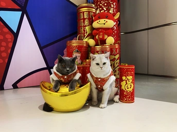 两只猫咪贺新年。