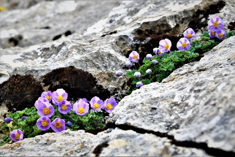 拟耧斗菜 Paraquilegia microphylla 拥有超高的颜值,是滇西北最著名的高山花卉,生长在高山崖壁之上,任凭雨雪风霜,依旧傲然盛开,表现出强大的生命力。
