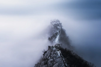 大雪,午后爬上正北楼。雾罩敌楼,尤见琵琶半遮面。忽一阵风,云雾翻滚,长城赫然毅力于仙境中!