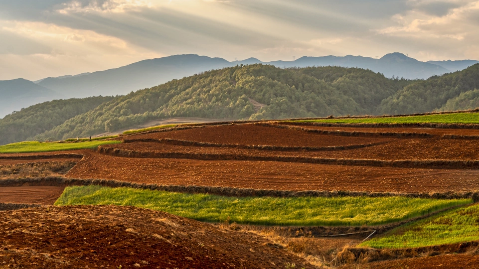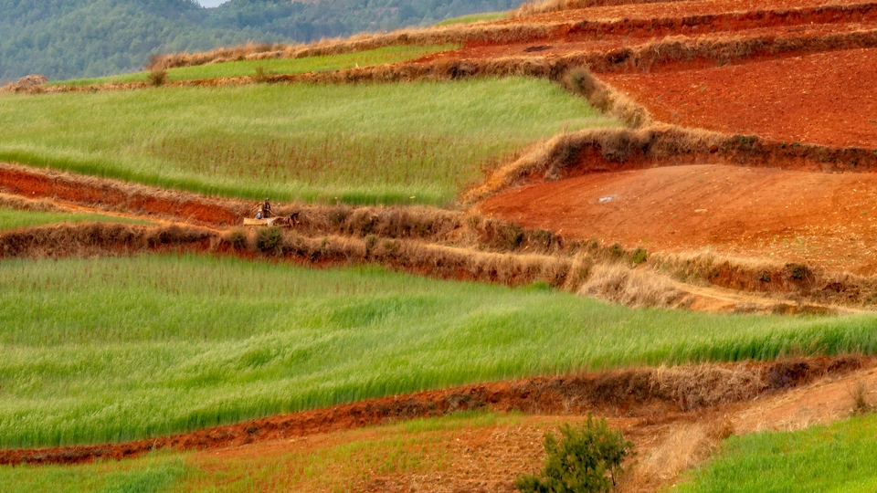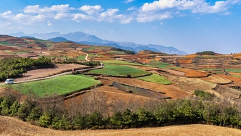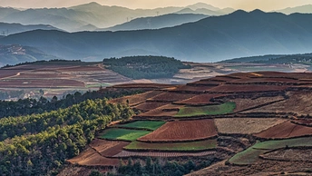 【2021】东川红土地位于昆明市以北偏东方向的新田乡,海拔1800米至2600米之间,这里因高温多雨,土壤含铁、铝成分较多,有机质少,所以久而久之土壤呈红色。