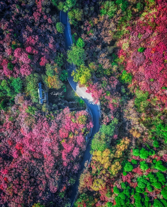 航拍济南红叶谷的秋天