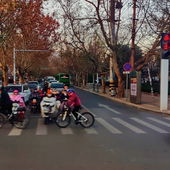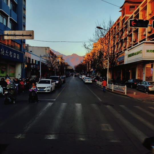 落日西沉,行人匆匆,红绿灯交汇的瞬间,时间铺展的网在每个路口交叠。