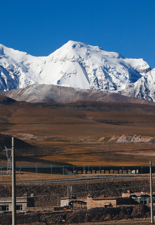 还把4700的地方抓拍进出的村落与远处的唐古拉冰川。展现青藏高原人与自然的风貌。