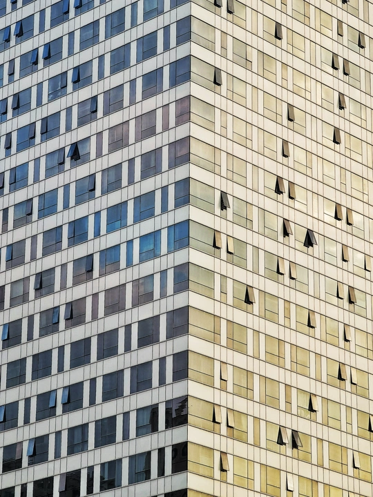 位于汕头市时代广场的商业综合体群光汇,外立面为方形组合而成。早晨,阳光照射在大厦南面变得光亮,而西面则相对阴暗,形成明暗的分界线。