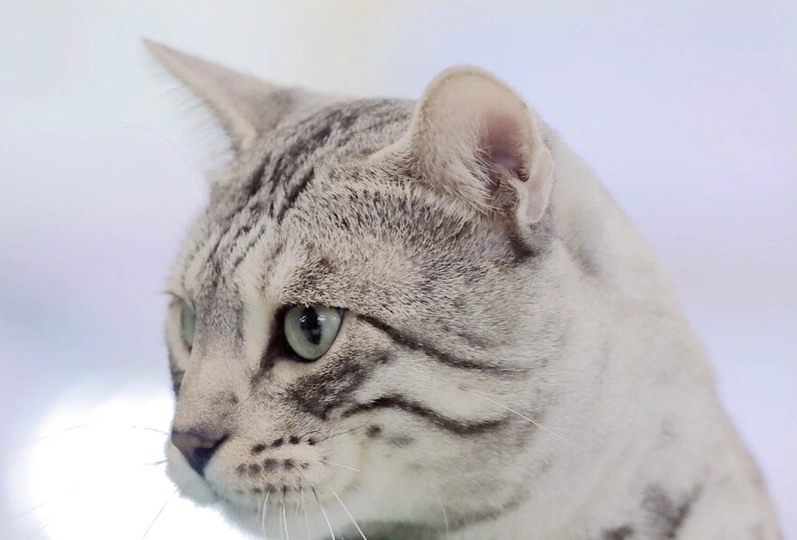 这是一只赛场猫咪,纹路清晰看起来很矫健,野性中带着温柔,名字叫做雪豹,喵如其名