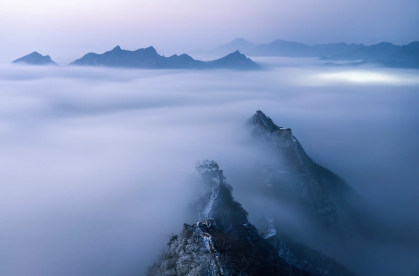 雪夜过后,登长城!万里云雾,遮秀容。一朝风,一朝雾,万里云上城!