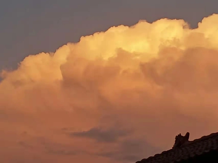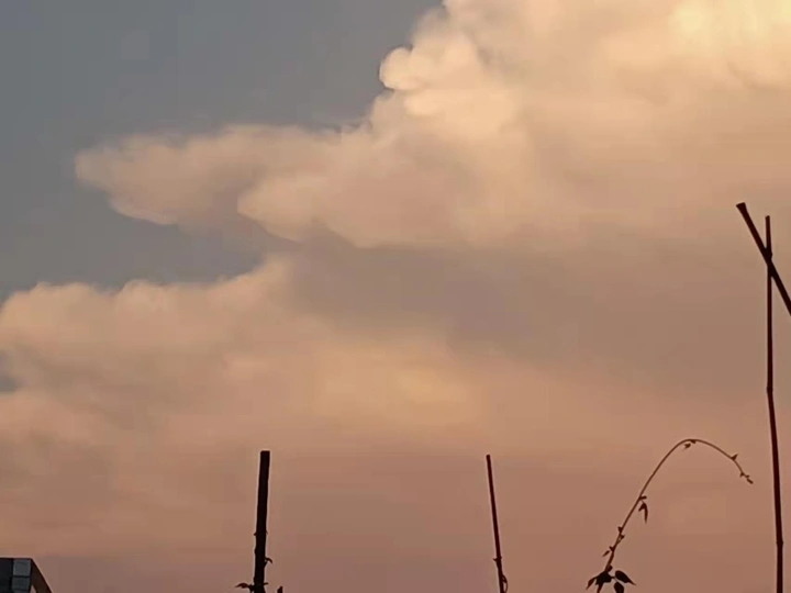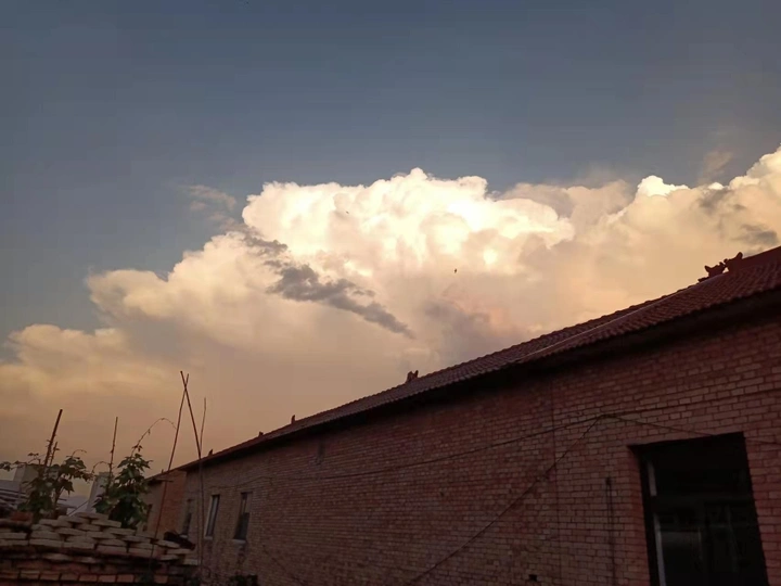 这也是我在家中的时候,傍晚闲来无事,到小院中浇花,偶然抬头,发现了这般美的晚霞,厚实,可爱
