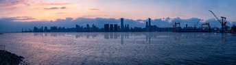 钻石湾与中山区隔海相望,清晨日出之前,阳光从云层之间射出,点亮整个天边。