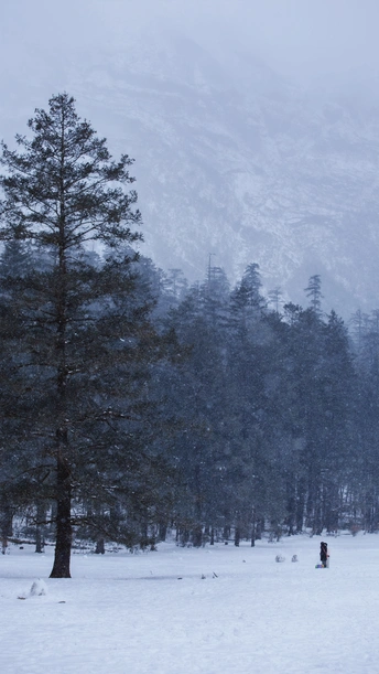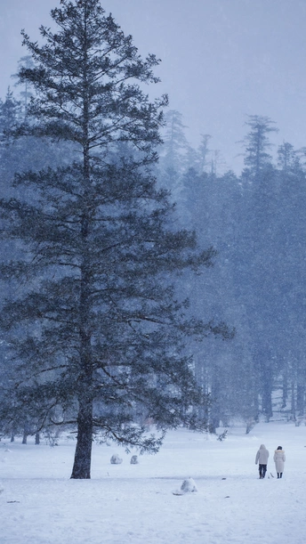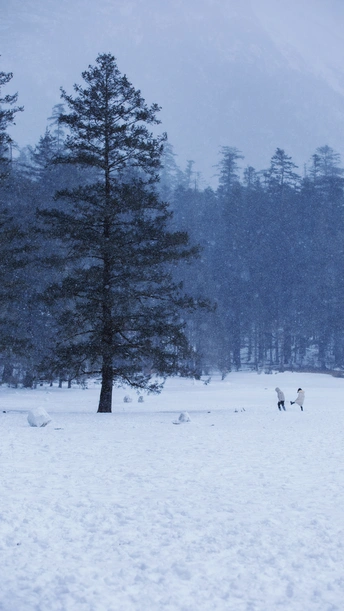 🎬主题:👫🏼一起玩雪☃️ 🌨️天气:下雪❄️ 📮地址:玉龙雪山🏔云杉坪 💞心情:快乐加倍💯 📝文案:冬天令人心动的第一次玩雪