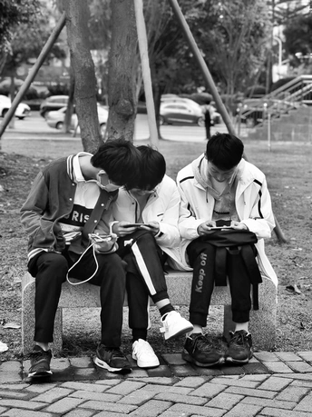 学校开始放寒假了,三个同学相约来到了时代广场。时代广场南临交通要道中山路,是市民运动、休闲的好去处。他们在广场运动了一段时间后,坐在一起玩起手机游戏。