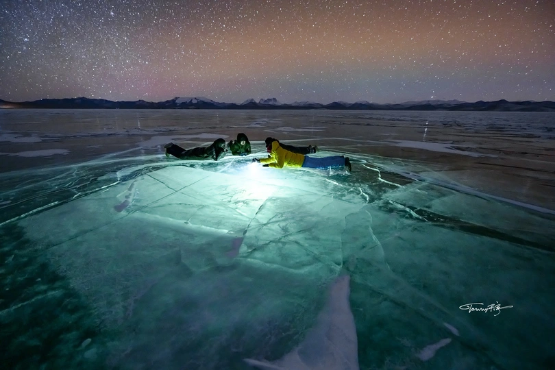 零下二十度的夜晚,趴在冰面上感受海拔五千米蓝冰的寒冷彻骨。