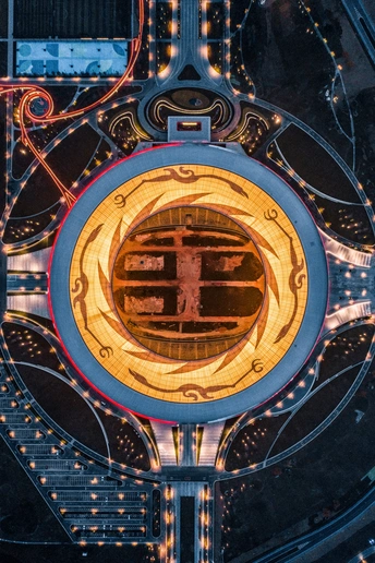 黑夜中的成都世界大运会·东安湖体育主场馆,太阳神鸟的图案格外耀眼。 @米拍 @米拍社长