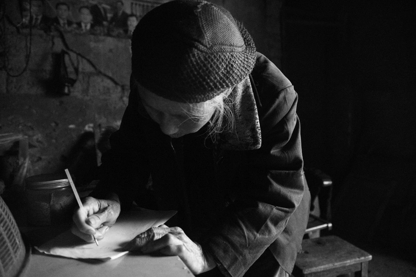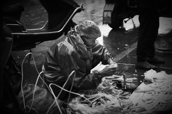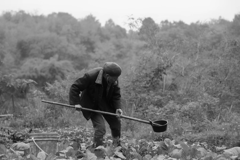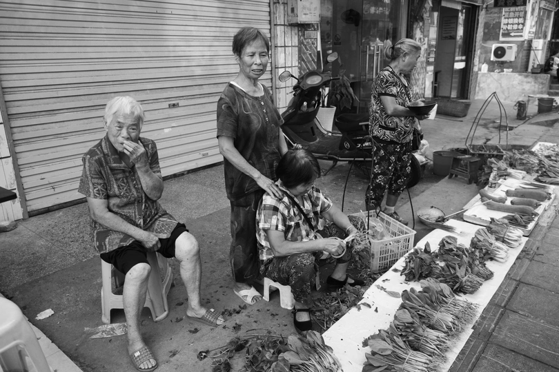 生计,不管刮风下雨还是很恶劣的天气,都检测摆摊卖菜,久而久之就成为一种生活习惯,在这一群人中发现了一个不一样的老人。年纪八十又三,徒步两三个小时的路程,为卖一把菜辗转几个菜市场,9.28日初见,在一群摊贩中最瘦小,蜷着身子,在篮子上放根棍子便算是坐着,我想:这个老人不容易。 10.12日和同学外出拍摄,在公交车上偶遇,便一路尾随,在桥边站下了,老人挑着两个篮子,颤巍巍走着,我旁敲侧击走上,跟着她一路,得知她八十有三,日子非常不容易。跟着她去了杂货铺、小卖部、几个菜场,最后一把菜还是没卖出去。 来到老人家里,她照常挑着尿桶,去田间施肥,干完活,老人却在我的镜头前哭了起来,说自己日子过得非常不容易,八十三还靠着自己微薄的卖菜钱活着。 我希望一直拍下去,直到老人有安享晚年的那天。