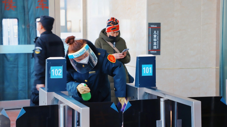 疫情防控常态化,又是一年春运时 进站核验健康码,行程码,安检,定时消杀 候车间隔就座,出站核验双码,做核酸 铁路部门多措并举,全力护航2022春运