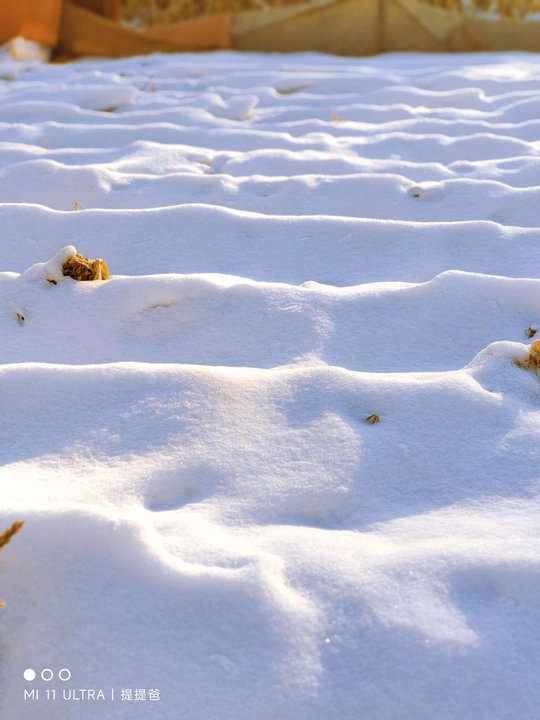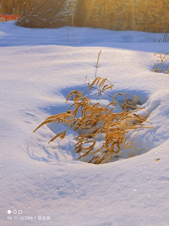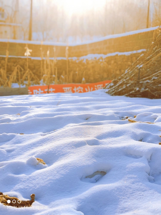 shot on xiaomi 11ultra 皑皑白雪覆盖的农家院子里, 金灿灿的夕照投射下来, 显得晶莹剔透。