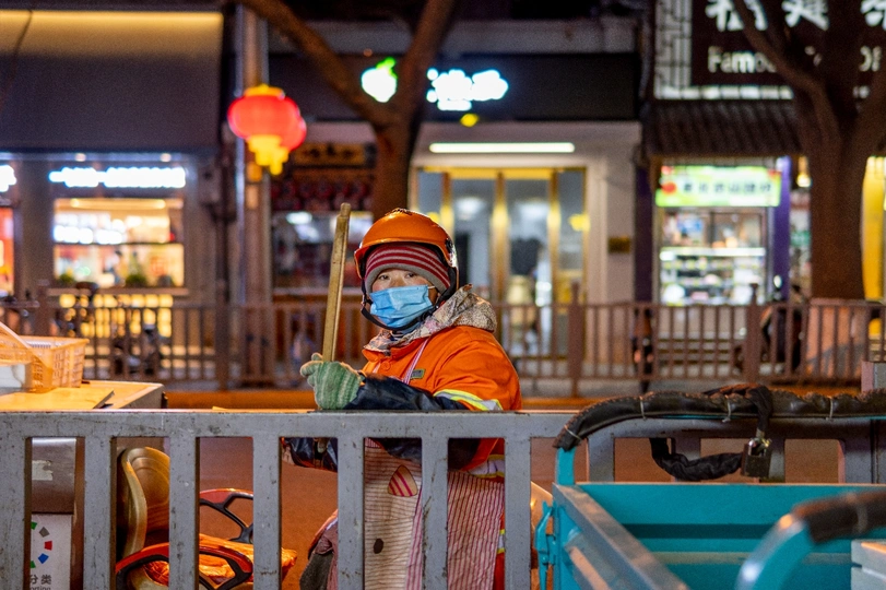南锣鼓巷的环卫工人正在垃圾桶里翻找分类垃圾