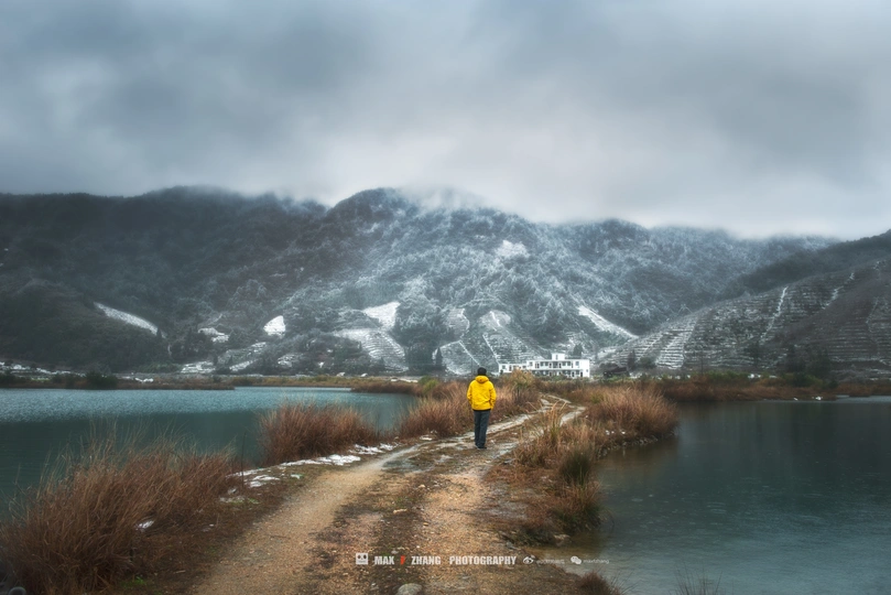 清晨,一夜的冻雨导致输电线结冰、拉断,村子停电,出来走走比屋子里还暖和一点。