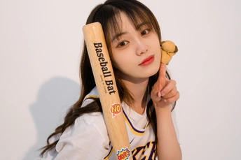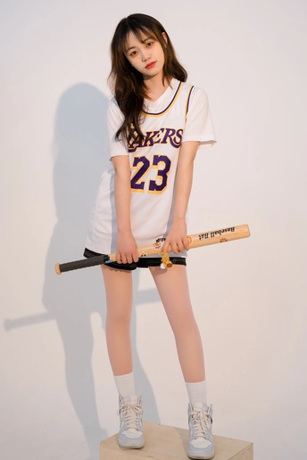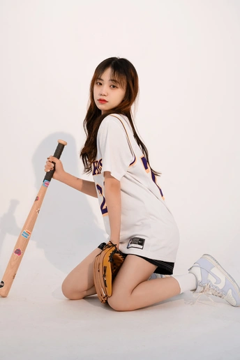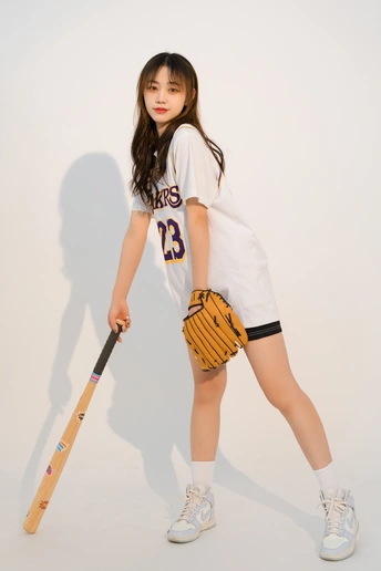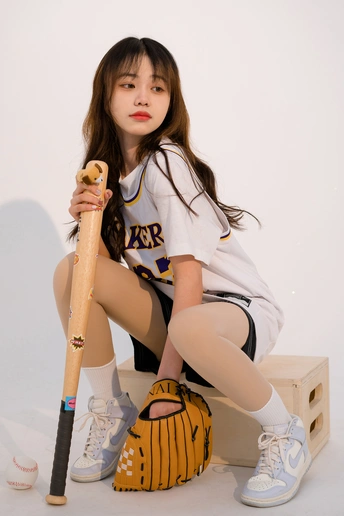 棚拍妹子,只需要准备棒球棒和手套,衣服是妹子自己带来了
