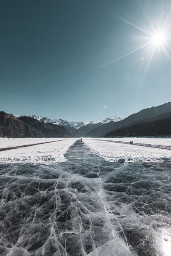 冬天的瑶池,人们行走在仙境上面,仿佛梦回瑶池盛会
