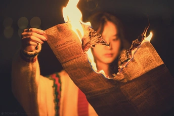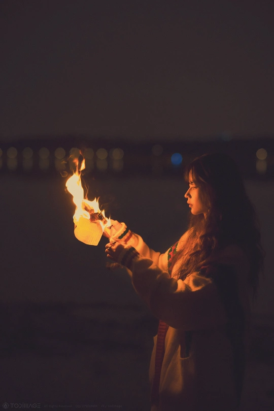 旧报纸遇上火焰, 在漆黑的夜里, 闪动, 就照亮了一片天地。 - 这是一次尝试,试一点新鲜的东西,(虽然都是大佬们玩剩下的)。 小提示: 1、道具:报纸 + 火机 废弃的报纸,外文的最好,比较唬人。看起来也有距离感和新鲜感。 2、时间点: 尽量选择晴朗的傍晚,太阳落山后的半个小时,太黑了画面对比变强,虽然增加了视觉效果,但是会损失细节,内容会打折扣。 3、拍摄地点: 一定要选择空旷的地方,最好是水边,远离干燥易燃物品。拍照很重要,但是安全第一,牢记在心。 4、模特及服化道: 原则上不选过于宽松的衣服,还是安全问题,色彩偏暗,但不要黑色,容易融进背景,中性色火红色较好。 (这次拍摄属于临时拉妹纸出门,没考虑那么多,衣服还是很不理想,下回一定注意) 5、最后: 注意安全,注意防火,一定要注意安全。祝大家安全拍出大片。