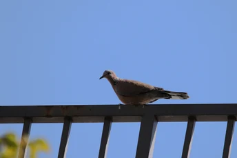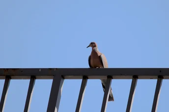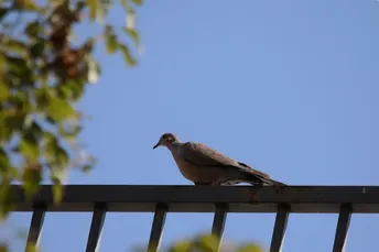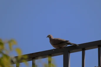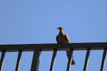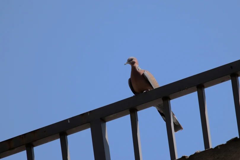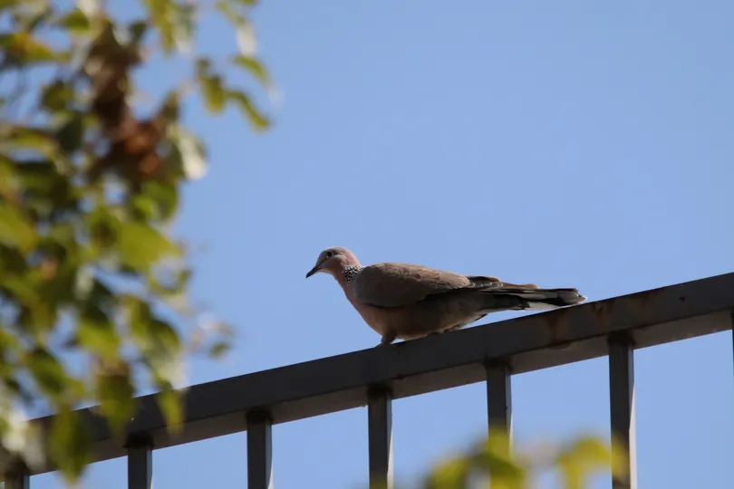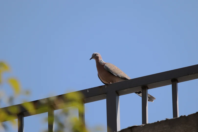 蓝天下的珠颈斑鸠。