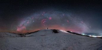 2021的最后一天 追光者来到一个雪坡上 直径10万光年的银河横跨在天空 古老的光带着宇宙的记忆来到地球 随着钟声响起 他用手中的相机记录下这跨越时间的一幕 新的一年开始了......
