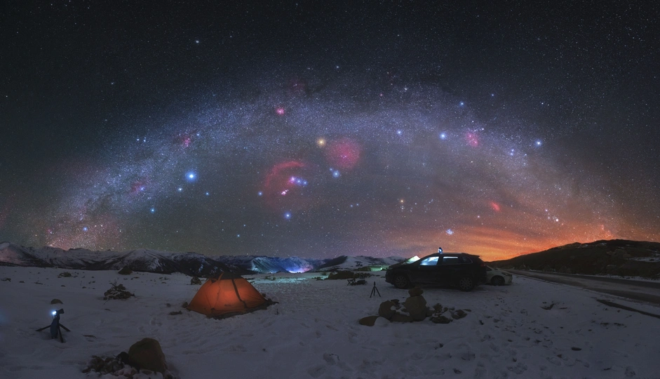 又到了一年一度的双子座流星雨,和几位星友来到了折多山垭口拍摄流星雨,在月亮后闲暇时接片拍摄正在下山银河拱桥