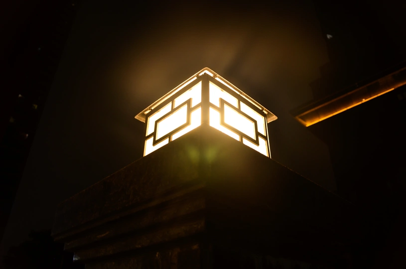 一个小区的静谧角落,一盏灯孤独地绽放着光
