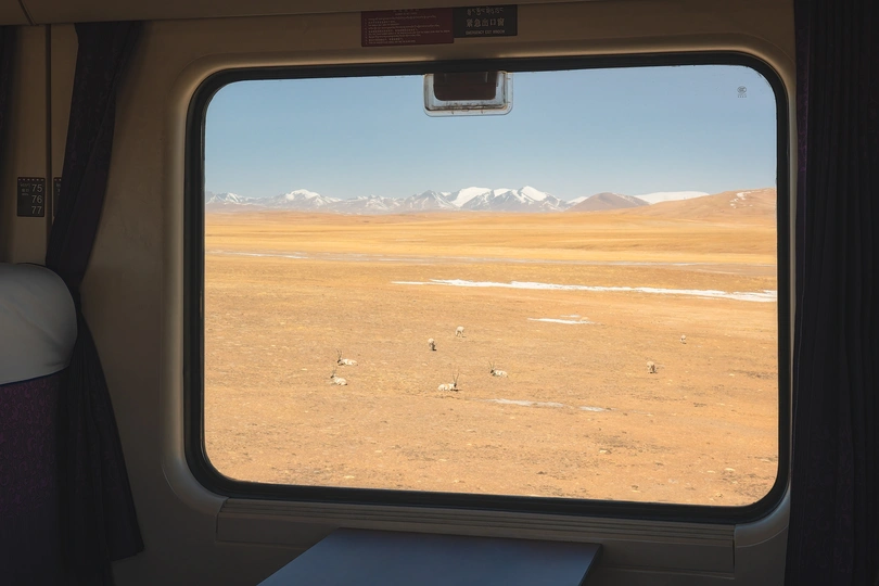 青藏线坐了十几次,终于在火车上抓拍到藏羚羊啦,而且正好背景还是唐古拉山脉的雪山! 青藏铁路大概从玉珠峰站到安多站之间,会经过可可西里无人区的边缘地带,沿途野生动物还是很多的,特别是藏原羚、藏野驴、野牦牛等等。 藏羚羊偶尔可以看到,不过它们本身颜色就和环境接近较难发现,而且火车一直在开动。前几次看到之后再举起相机,早就已经错过了。 这次在经过唐古拉山口段的时候,全程保持警惕,眼睛斜看前方,相机一直举着并保持连拍模式,终于在火车上拍到好几群藏羚羊~ 青藏铁路的生态保护措施做的很好,火车运行的噪音很小,而且估计很多野生动物已经习惯了这种绿色“大蛇”来来回回经过,因此都很淡定的继续吃着草晒着太阳。 这张照片是我#火车看中国 系列组图之一 车次:格尔木-拉萨 Z6811 拍摄点:唐古拉山口附近 拍摄器材:A7R4相机+24-105mm镜头 曝光参数:车窗内外分开曝光,车外iso200 f5.6 1/1600s 49mm,车内iso200 f8 1/320s 49mm 后期:XPS17笔记本,软件Camera Raw+Photoshop+Topaz Denoise+Nik Collection