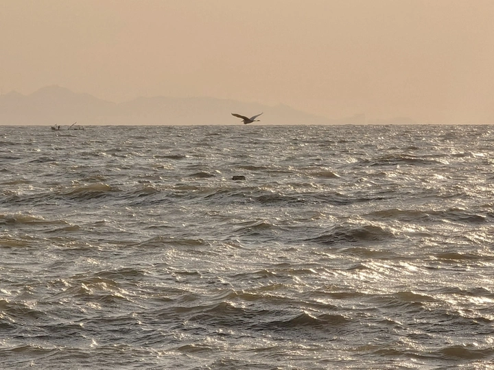 辽阔的东海岸,一只海鸟紧贴海面飞旋。