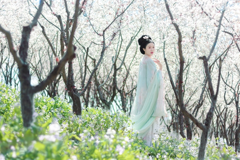 春天是杨柳含风,依依恋恋;也是百花盛开,明媚烂漫。 出境:是此系呀 妆造:安娅 摄影/后期:弦思 本来想着在周围转转看看能不能碰到能拍的花,没想到这边竟然有这么一大片,不用刻意找角度避免穿帮的那种