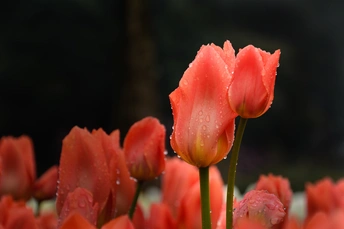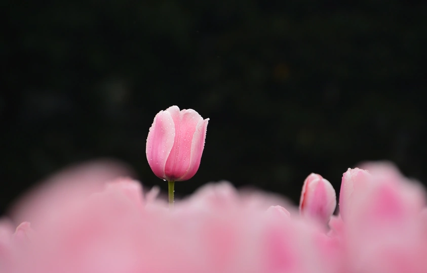 郁金香伸展着挺拔的身姿,在春雨的润泽下显得娇滴滴,十分惹人爱!