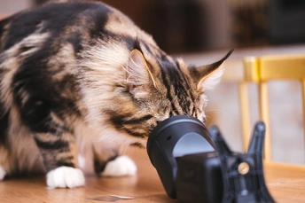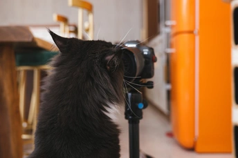 好奇的猫咪 “让我看看这俩大黑家伙是什么东西”